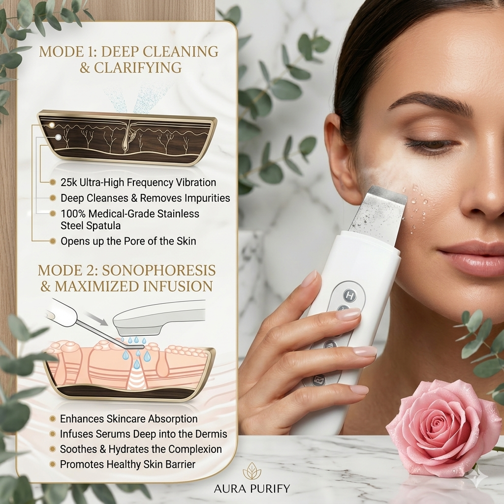Tired of expensive spa treatments? The Aura Purify™ Ultrasonic Skin Scrubber brings professional-grade skincare technology right to your bathroom, giving you spa-quality results in just 5-10 minutes a day.